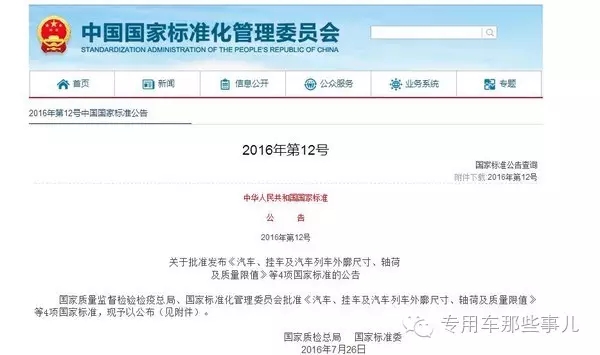 關(guān)于新版GB1589的修訂成為大家熱議的話題,何時(shí)正式發(fā)布牽動(dòng)著國(guó)內(nèi)車輛生產(chǎn)企業(yè)、物流運(yùn)輸企業(yè)和終端用戶的心,根據(jù)中國(guó)國(guó)家標(biāo)準(zhǔn)化管理委員會(huì)的最新公告,2016版GB1589在2016年7月26日已正式實(shí)施發(fā)布。