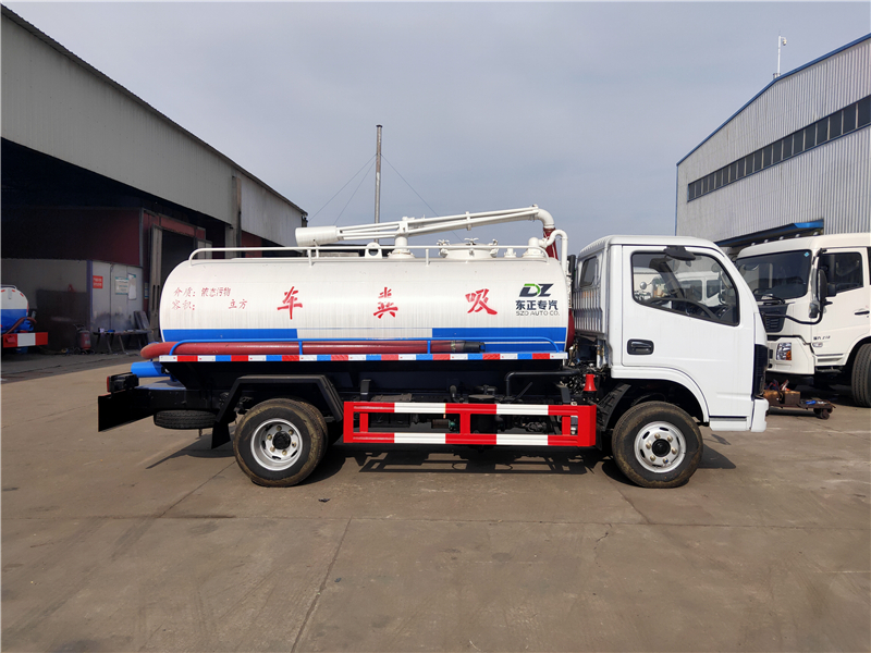 吸糞車專用部分由取力器、傳動軸、真空吸污泵、油水分離器、水氣分離器、防溢閥、壓力罐體、液壓部分,管網系統(tǒng)、吸污導管、自流閥、真空壓力表、視糞窗、洗手裝置等組成。罐體采用Q235碳鋼板制作,罐體封頭一次壓鑄成型,吸污導管可自吸自排,隨車配置大功率真空吸污泵。