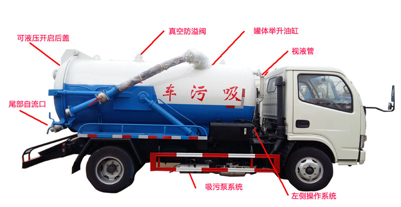 吸污車專用部分由取力器、傳動軸、真空吸污泵、壓力罐體、液壓部分,管網系統(tǒng)、真空壓力表、視糞窗、洗手裝置等組成,隨車配置大功率真空吸污泵(可選裝水環(huán)式真空泵)和優(yōu)質液壓系統(tǒng),罐體封頭一次壓鑄成型、雙頂自卸。